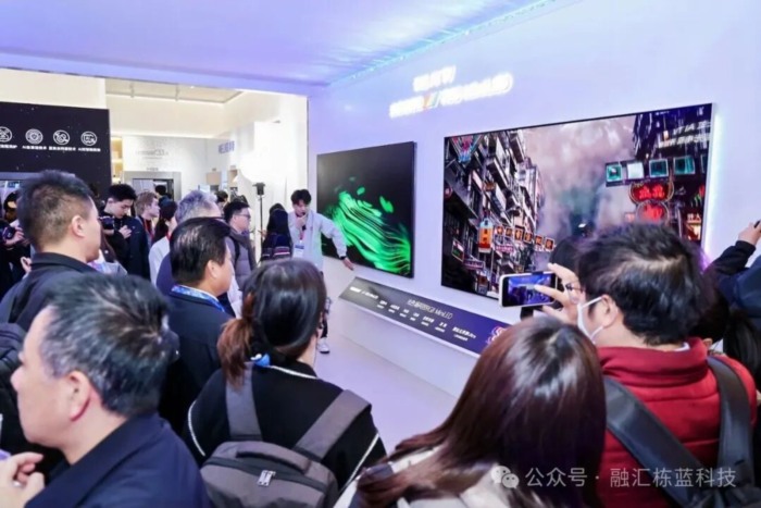 电视展区永远不缺关注。展会首日,长虹电视携行业首款光色场同控 RGB MiniLED电视——长虹金标T70S首次亮相,创新推出AI全链路光色场同控技术方案,解决传统RGB显示偏色、串色难题,实现色彩纯净度与画质突破。行业首款RGB氛围光壁画电视追光Q70S同步亮相。新品搭载情感化AI交互,支持自定义视频开机、一句话投屏等功能,开启新一代智慧交互体验
