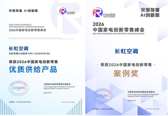【环球科技网】3月,中国家电及消费电子博览会(AWE2026)在上海启幕。作为行业风向标,AWE不仅是新品与技术首发的秀场,更是产品实力的考场。在本届展会上,2026中国家电创新零售峰会上同期举办,长虹空调一举斩获两项大奖:客餐厅共享空调获评“2026中国家电创新零售峰会优质供给产品”,春熙路夏日营销案例荣膺“中国家电零售创新案例”,两项殊荣,印证了长虹从产品创新到用户触达的全链路实力。与此同时,“山水间”空调凭借健康空气领域的差异化定位,成为展会期间业界热议的焦点。