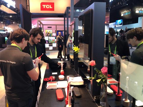 今年是TCL进入CES主展馆参展第11年,1450㎡的展览面积是中国企业中展示面积最大的。同时在智能家居的场景化展示、沉浸式体验设计等多个方面都做了改进,通过加强体验感提升用户对TCL品牌和产品的认知。今年TCL展馆内最显眼位置属于XESS生态链产品展示区,展示产品包括XESS声波电动牙刷、XESS智能美妆镜、XESS智能RF射频美容仪、XESS智能冰肌美容仪、XESS同声翻译机等。