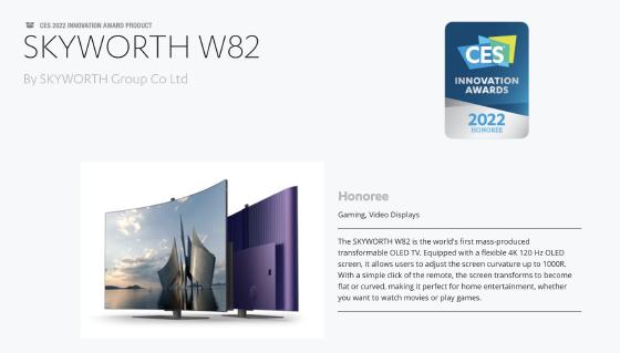 创维首款OLED变形电视W82斩获CES 2022 “游戏”和“视频显示”双料创新奖