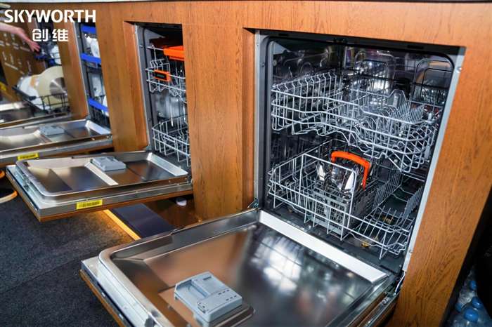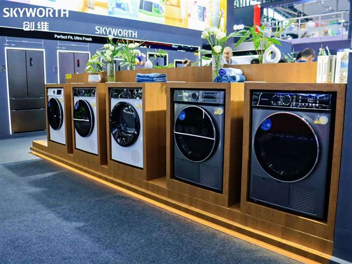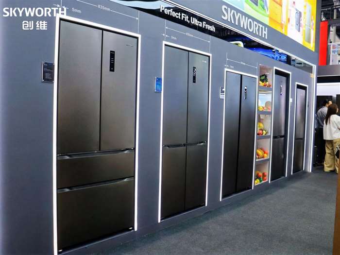 除了作为智慧家庭中枢的电视产品,创维此次展出的全品类家电同样精彩纷呈,共同构筑了完整的智慧生活解决方案。创维冰箱冷柜、洗衣机、干衣机与洗碗机等明星产品齐聚展台。冰箱产品覆盖对开门、多门、Combi、TM等多款式多型号,其中全新一代风冷冰箱在保鲜、节能方面实现升级,搭载Health³立体健康科技,全时段99.99%抗菌与全空间99.95%净味技术,有效抑制细菌滋生、延长食材的保鲜周期。展出的超薄零嵌冰箱,采用60cm超薄机身与底部散热设计,可平嵌安装于橱柜,既能节省空间又能平整融入家居设计,美观实用。洗烘产品以多容量设计与智能烘干程序契合多样化家庭需求,并以平嵌设计融入家居,能效达到A-50%;洗碗机兼具独立式与嵌入式等款式,外观及内饰丰富,适配多场景应用,另搭载全腔喷淋与UV杀菌模块,帮助用户轻松解放双手。