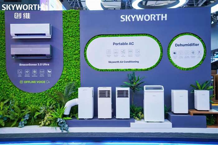 空调板块展示了Delfin、Vela、i健康、Multi-S等系列新品,实现从新风系统到多联机的全场景覆盖,具备节能、健康与智能互联等方面的优势,可连接WIFI,并支持离线语音、手机APP控制;移动空调凭借易安装、可便捷移动等特点吸引众多客商驻足体验。
