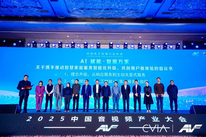 当前,AI技术与音视频、显示产业深度融合,智慧家庭场景加速落地,但行业仍面临设备互联不畅、服务体验不均、创新协同不足等挑战。会议现场发布了由中国电子视像行业协会智慧家庭服务分会、海信视像、TCL实业、青岛海尔多媒体、四川长虹快益点、深圳康佳、乐融智家、深圳安时达、青岛赛信维智等联合牵头发起的《关于携手推动智慧家庭服务智能化升级 共创用户体验高水平的倡议书》。该倡议书凝聚产业共识,呼吁产业链上下游企业携手,以“理念升级、全程赋能、以人为本”为核心导向,推动服务从被动响应向主动关爱式转变。中国电子视像行业协会副会长冯晓曦先生作为代表宣读了倡议词。
