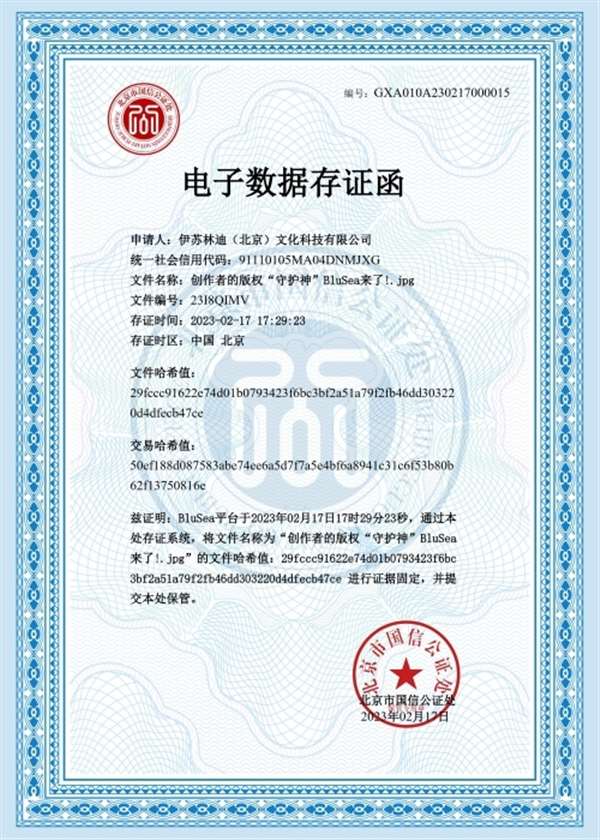 正是在这样的背景下,专为创作者打造的“BluSea版权存证保护平台”带着伊苏林迪的企业责任进入市场。BluSea深知版权(著作权)的特性——版权的诞生是创作完成后自动享有的,所以怎样证明作品的“出生时间”,就成为版权确权的关键。对创作者而言,最重要的著作权保护便是在创作过程中,快速保存自己原创作品的权威性记录。