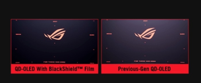 ROG超神32三代电竞显示器采用32英寸的QD-OLED面板设计,搭载了全新BlackShield™黑盾涂层技术,在视觉呈现上,为玩家带来更加沉浸式的游戏视觉体验。这项技术可以将视觉黑阶提升40%,在明亮的游戏环境中,可以大幅减少环境光反射,轻松解决玩家们广受反光干扰的痛点,呈现出更浓郁、更深邃的纯黑效果。而且,其抗刮擦能力是上一代QD-OLED面板的 2.5倍,获得更强的抗刮擦能力,使OLED面板使用寿命得到大幅提升。