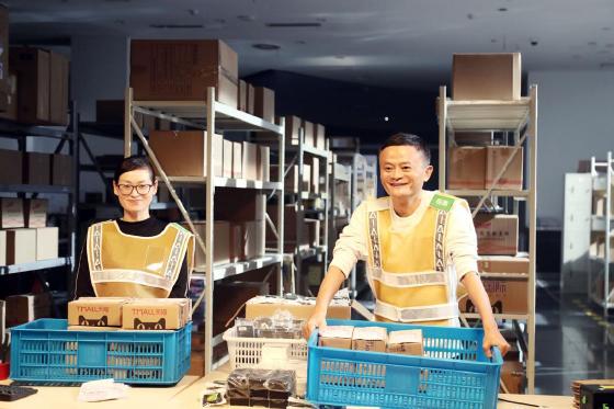 马云首先挑战的是两位天猫双11物流人——36岁的仓库质检员胡美菊和40岁的快递员肖其栋。