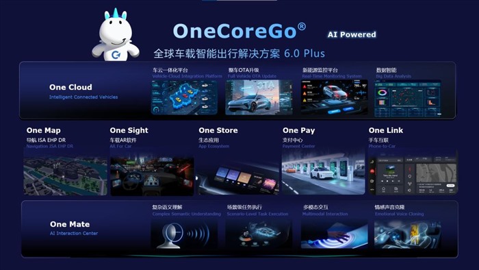 OneCoreGo®全球车载智能出行解决方案6.0 Plus东软以AI、大数据等新技术应用为核心,推动汽车向移动的智能空间演进,东软OneCoreGo®全球车载智能出行解决方案6.0,正是这一探索的关键成果。不仅在核心板块One Map(全球导航产品族群)中引入视觉语言模型,更以AI能力为基础,建立One Mate(AI交互中心),集成复杂语义理解、场景级任务执行、多模态交互、情感声音克隆等技术,融合多种大模型的推理和理解能力,实现对复杂任务的智能规划与无缝执行,提升车载交互的智能水平与驾乘乐趣。此外,东软持续推进手机-汽车互联与车联网云平台解决方案体系建设,OneCoreGo®全球车载智能出行解决方案完善迭代至6.0Plus,实现了“导航+支付+交互+车联+运营”的全球全链路能力闭环。