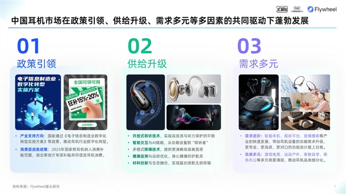 中国市场的蓬勃活力,不仅体现在规模增长上,还反映在其高度成熟且创新的线上销售生态中。当前,线上渠道已占据91%的销售份额,其中以淘天为代表的传统电商贡献了62%的耳机销量,构筑了行业销售的主阵地。中国耳机市场的快速增长,是政策引领、供给升级、需求多元等多重元素共同作用的结果