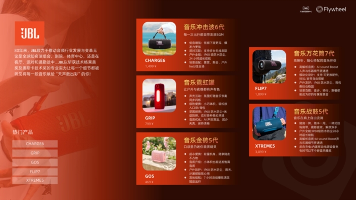 JBL作为拥有八十年历史的音频品牌,拥有深厚的声学积淀与全球化场景渗透力,并以“声来无畏”的精神推动行业技术与体验的革新,从好莱坞殿堂到全球顶级赛事,其专业基因早已融入品牌血脉。面向追求品质与个性的当代消费者,JBL在运动户外音箱领域构建了多维产品矩阵,从CHARGE6的低音增强到GRIP的声光互动,从GO5的极致便携到FLIP7的骑行专属设计,加上XTREME5依托音质优化及超长续航,成为户外派对的氛围核心。JBL在防水防尘、续航持久与形态适配等硬核指标上持续突破,精准回应不同场景下的听觉与功能需求。