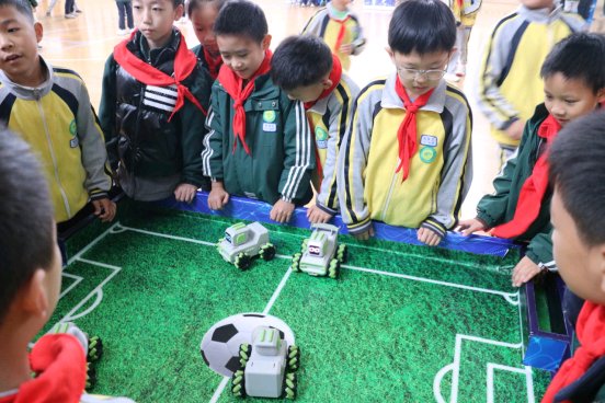 此外,体感格斗机器人带来的激烈对战体验,让学生们在互动中感受到了科技的乐趣与挑战性。足球机器人在场上的灵活跑动与精准射门,展现了科技与体育的完美融合,激发了学生们对科技体育的兴趣。同时,机器狗以其可爱的外观与灵活的动作,赢得了学生们的阵阵欢笑与掌声,进一步加深了他们对科技产品的亲近感与喜爱。